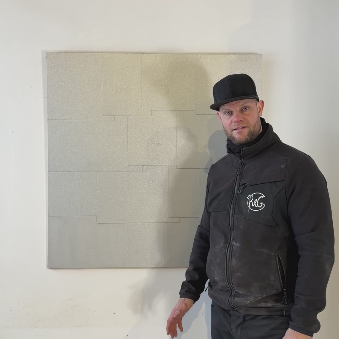 Denne beklædning fra Råt&Godt giver rummet et roligt og karakterfuldt udtryk med et tydeligt industrielt præg. Beklædningen udføres i aluzink – et restprodukt fra ventilationsindustrien – og kan sammensættes i forskellige formater, samlinger og mønstre, så løsningen tilpasses det enkelte rum i både form og udtryk.