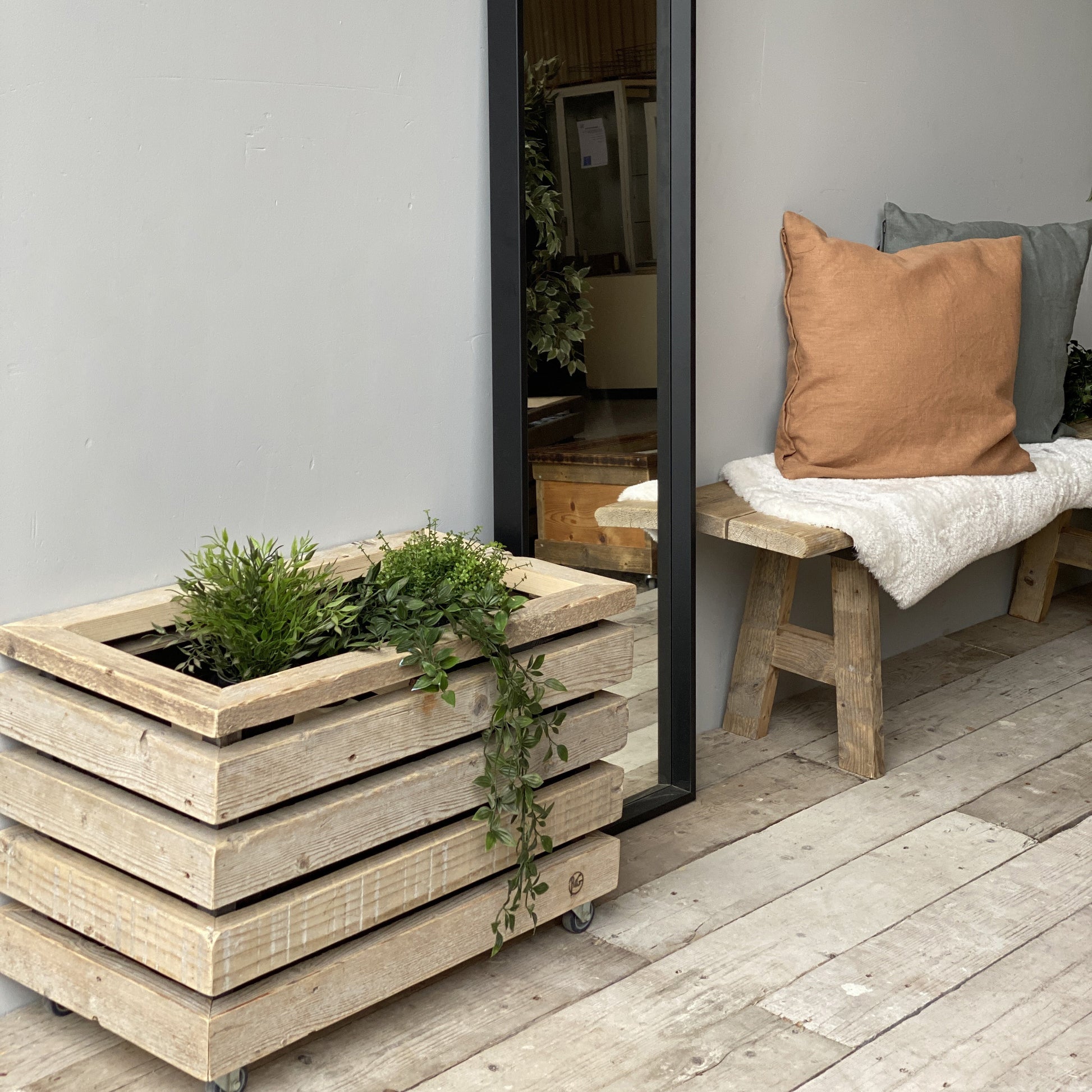 Lille LY plantekassen er udført i et stilrent design af FRIIS & MOLTKE Architects og Råt&Godt. Plantekasserne er produceret af norske traller. Trallerne er aflagte stilladsbrædder fra den norske byggebranche. Plantekasserne er ideelle til afskærmning i haven eller det åbne kontormiljø. De fås med og uden espalier og kan laves til både udendørs og indendørs brug. Den udendørs model, som kan stå under åben himmel, er med bund af traller og genbrugt transportbånd.